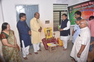 Prayer was sung while garlanding the portrait of Maharaja Agrasenji and lighting the lamp.