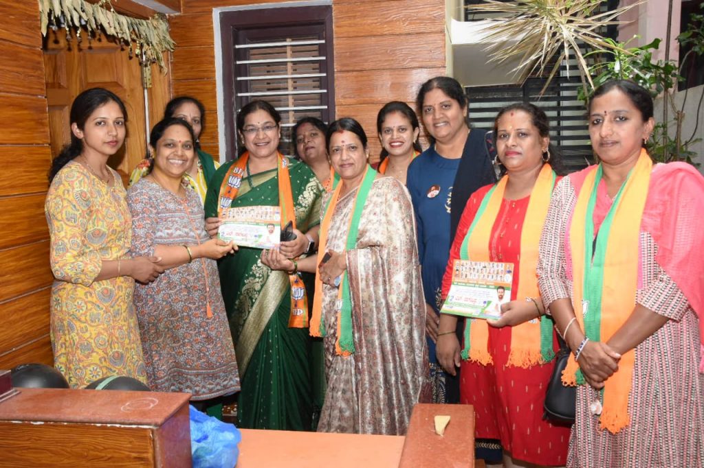 Sheela along with BJP Mahila Morcha workers went door-to-door and distributed pamphlets seeking votes for her husband Nagendra who is seeking reelection from Chamaraja constituency in the election on May 10.
