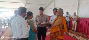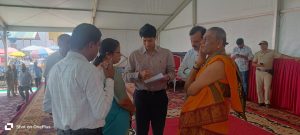 The officials along with main priest of. Chamundeshwari temple Shashishekar Dixit, inspected the main dais adjacent to the temple, where the idol of Goddess Chamundeshwari will be installed in a silver chariot, for the inauguration of Dasara festival.