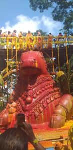 Mysuru: Less than a month after the gigantic idol of Nandi came alive at Chamundi Hills, a similar ritual was performed to bring alive the idol yet again on November 17.