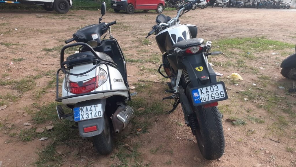 The motorbike that hit Anitha’s vehicle was abandoned by the accused. The motorbike is registered in the name of Aditya of Kurubarahalli.