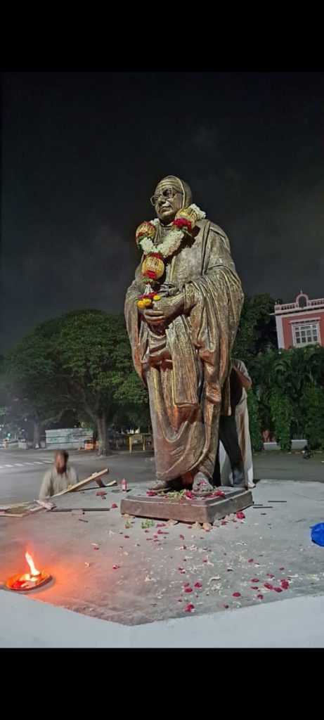In a press note to media, Pramoda Devi has stated “I have learnt about placing of a statue surreptitiously during late evening hours, using a crane at Gun house circle Mysore. It is very unfortunate that this kind of high handedness is displayed from an organisation claiming to be a prudent institution. I have supported sentiments of the members of the community who have persistently resisted installation of the statue in the said location”