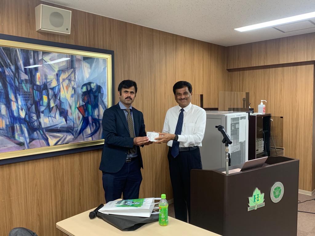 A meeting was held with the President of Hokkaido University, Dr HOUKIN Kiyohiro, Director, International Affairs Department, Eri Hata, Executive Director YUKIMATSDU Yasuhiro and Prof Kenji Monde of Hokkaido University.