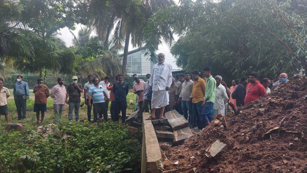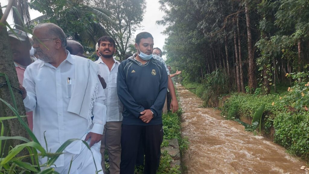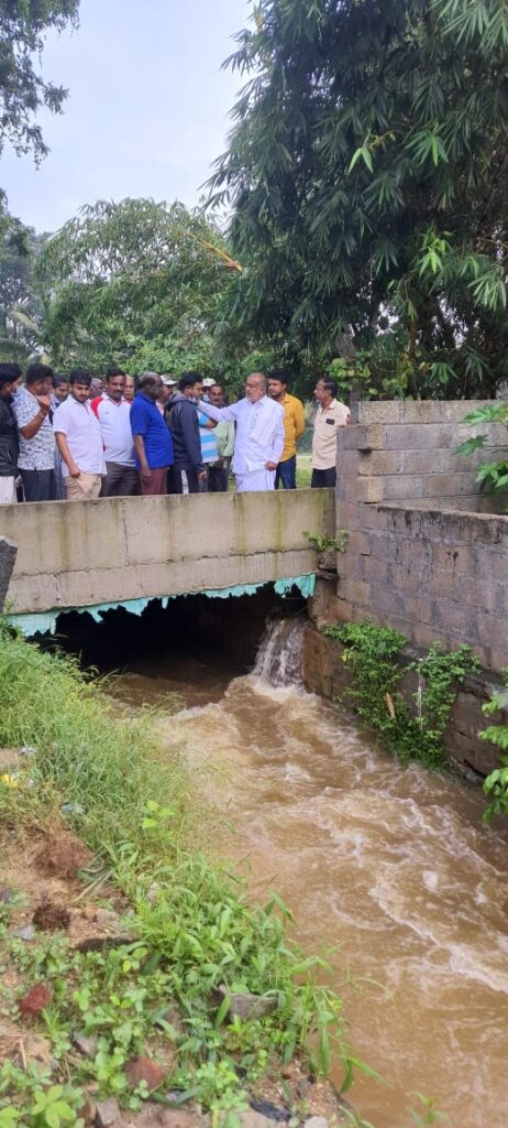 MLA and former minister G T Devegowda inspected the affected areas on Monday early morning and directed the officials to remove encroachments of canals to facilitate free flow of rain water.
