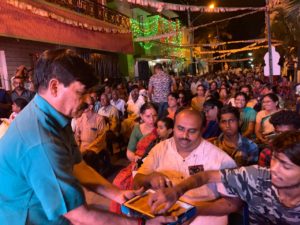 Thousands of people watched the swearing – in ceremony of Prime Minister of India Narendra Modi. LED screens had been put up outside the office of MLA S A Ramdas in Vidyaranyapuram.