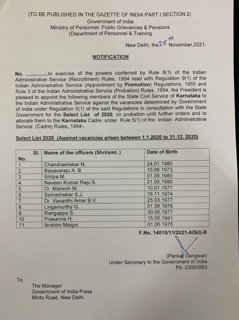 S J Somashekar KAS officer from Mysuru among 11 promoted to IAS