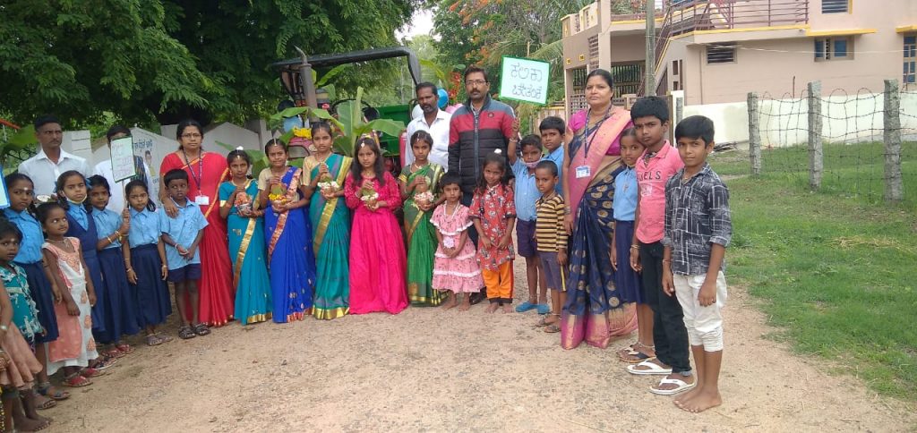 A special vehicle carrying flex boards highlighting the government schools, education and other benefits were displayed. The vehicle will continue to go around for eight more days at Nanjangud.