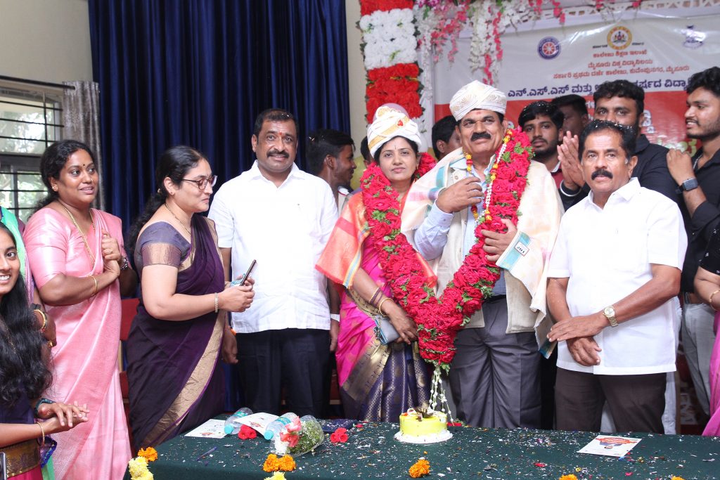 Mysuru: Volunteers of National Service Scheme (NSS) and final year students of Government First Grade College, Kuvempunagar in the city did Guruvandana (Honour to Teacher) to Dr S G Ramadas Reddy at the college auditorium in the city on Tuesday.