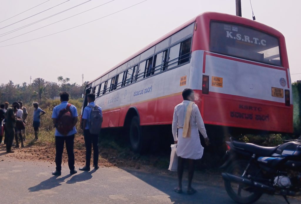 Mysuru: Passengers of a KSRTC bus going towards Hullahalli in Nanjangud taluk from Mysuru City had a providential escape, as...