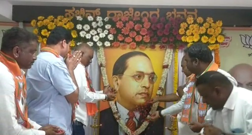 Mysuru: The 131st birth anniversary of Dr B R Ambedkar was celebrated at BJP office Sachin Rajendra Bhavan at Chamarajapuram...