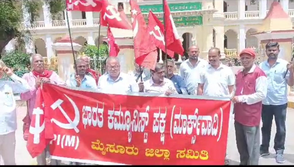Mysuru: Members of Communist Party of India (Marxists) (CPM) staged a protest against the Mysuru City Corporation’s proposed pay and...