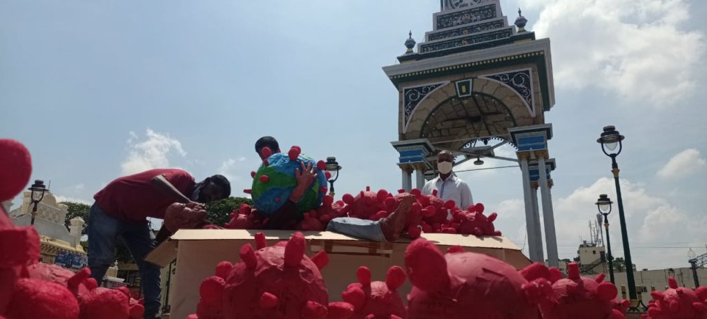 Mysuru: The pandemic Coronavirus has struck the world and this was aptly recreated in an artistic way in the heart...