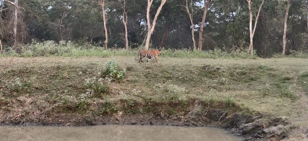 Mysuru: A couple from Mysuru spotted a tiger at Moolehole in Bandipur National Tiger Reserve Forest, on Friday. The Shilpa...