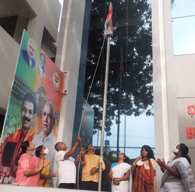 Mysuru: BJP city unit celebrated 75th Independence Day at its office- Sachin Rajendra Bhavan on Deva Parthiva road in the...