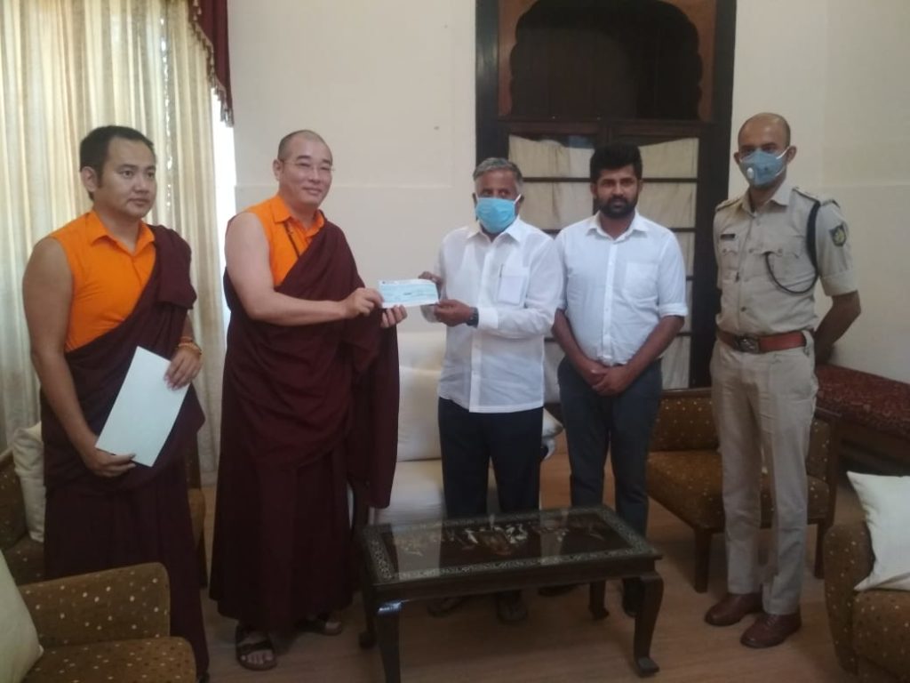 Mysuru: Namdroling Monastery, Bylakuppe in Periyapatna in the district, donated Rs 10 lakh to Chief Minister's Relief Fund to fight...
