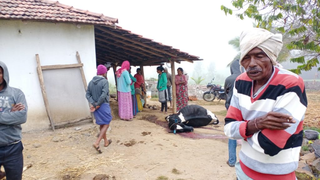 Mysuru: A wild tusker gored a cow to death at a village in the fringes of Nagarahole forest on the...