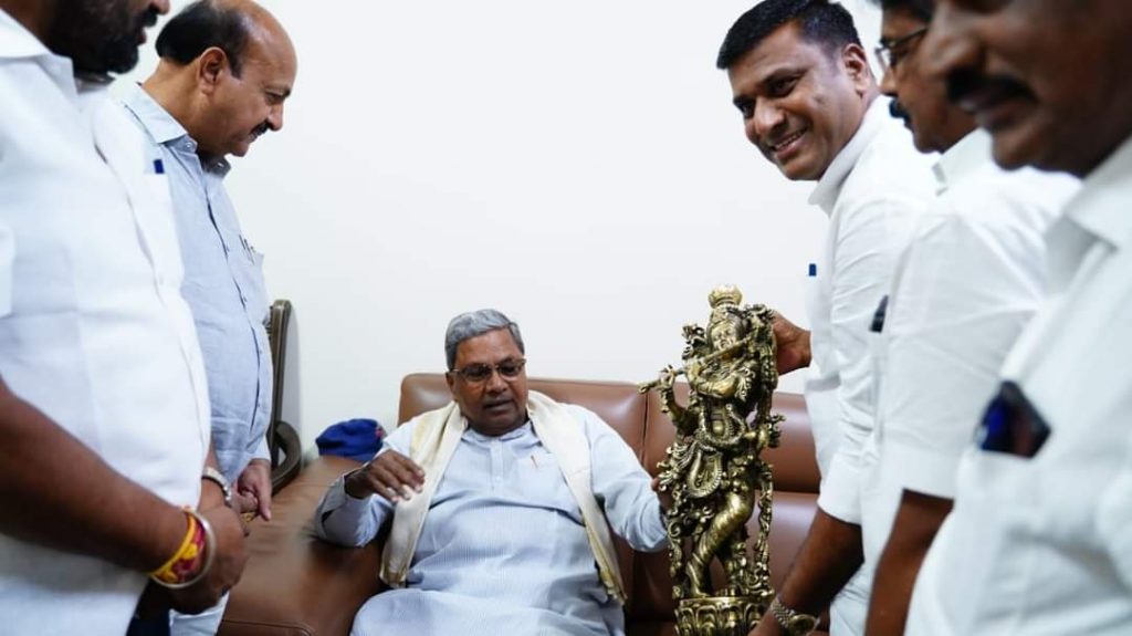 Bengaluru: Former MLA Bheema Naik who was elected unanimously as the Chairman of Karnataka Milk Federation (KMF) called on Chief...