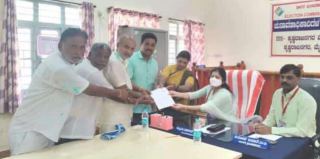 Mysuru: JDS legislator Sa Ra Mahesh offered prayers to presiding diety Chamundeshwari before filing his nomination on Thursday. He is...