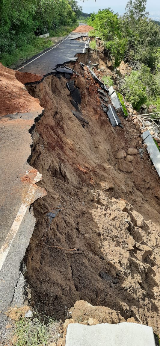 Mysuru: Landslide continues at Chamundi Hill in the city, with a portion of the road leading to Nandi statue caving...