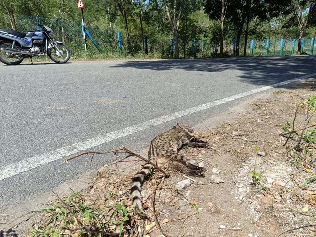 Mysuru: A Small Indian Civet cat was found dead at the Chamundi Hill Road Lalithadripura, Helipad and JSS Ayurveda Hospital...