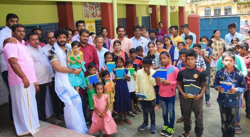 Mysuru: As the schools reopened, Sandalwood actor Vashista Simha distributed stationery materials to the students of Vani Vidyamandir, Chamundipuram in...