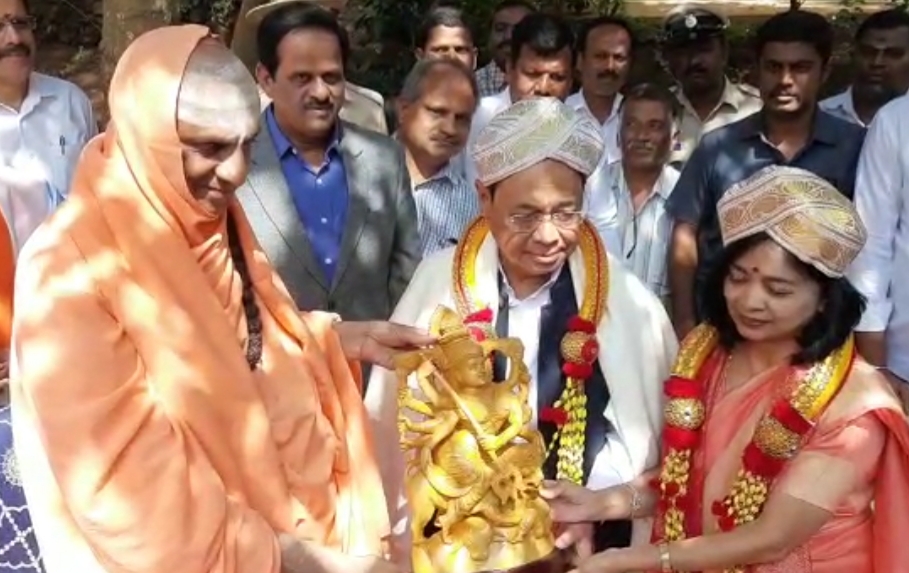 Chamarajanagar: Former Chief Justice of India Ranjan Gogoi was offered a traditional welcome at the branch mutt of Suttur mutt...