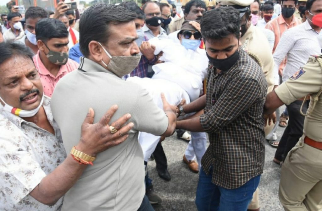 Mysuru: Former MLA and Kannada Chaluvali Vatal Paksha leader Vatal Nagaraj and film producer and Kannada activist Sa Ra Govindu...