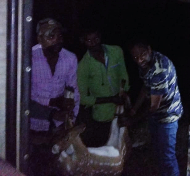 Chamarajanagar: Villagers rescued an injured deer and handed it over to forest department at Hosadoddi village in Hanur taluk on...
