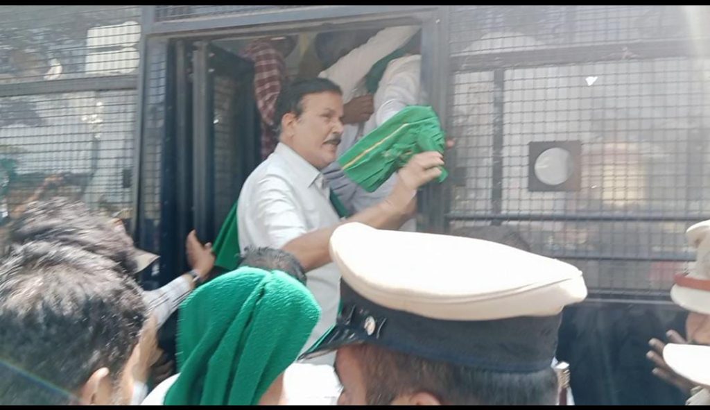 Mysuru: Farmers bid to stop trains as part of Rail Roko agitation at the main Railway station on JLB road...