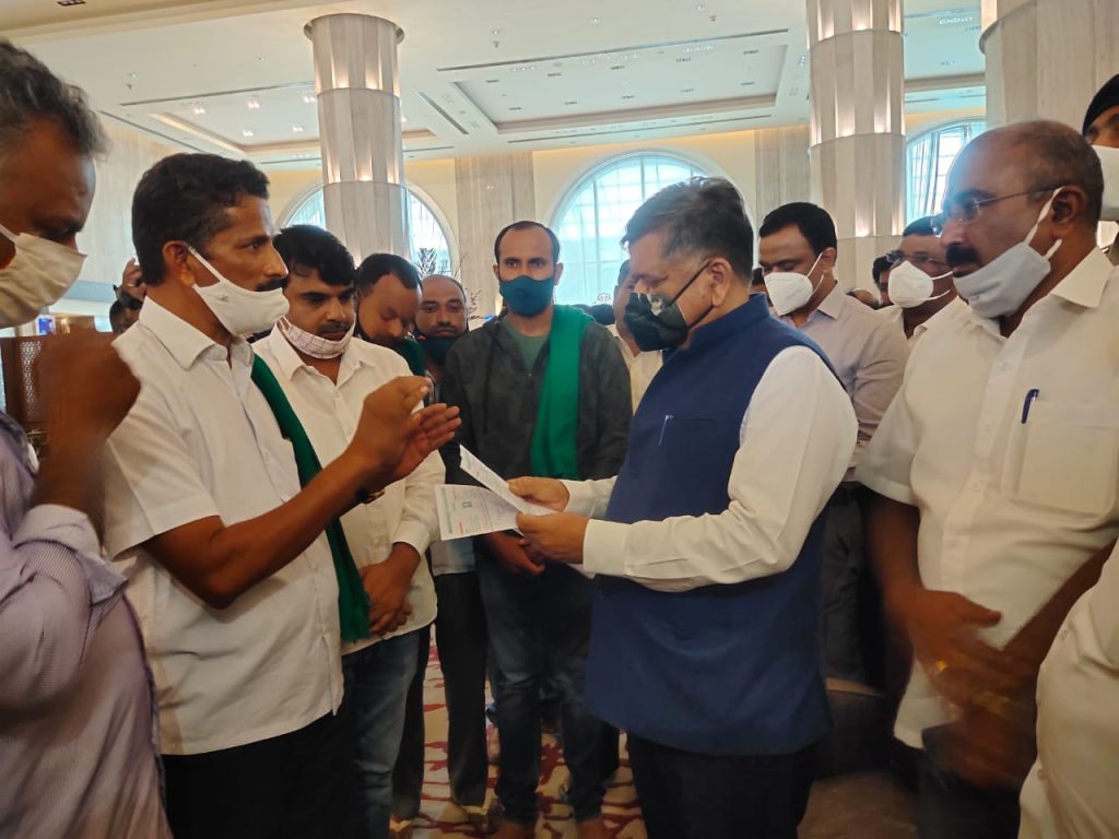 Mysuru: A delegation of farmers who are staging an indefinite protest against Asian Paints at Immavu in Nanjangud, met Industries...