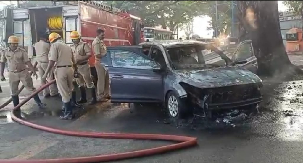 Mysuru: A doctor had a providential escape after a car he was driving caught fire at Shivarathri Rajendra Circle (...