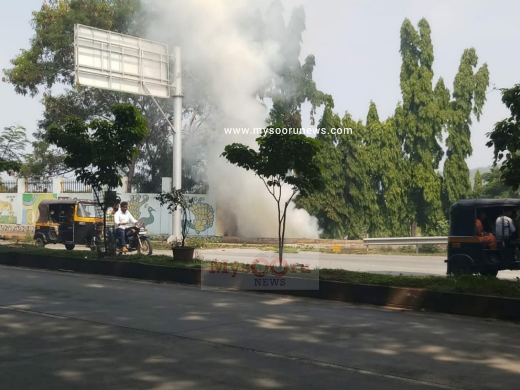 Mysuru: Waste dumped at the corner of Sahukar Channaiah Wrestling arena facing Bengaluru- Nilgiri road has caught fire. While it...