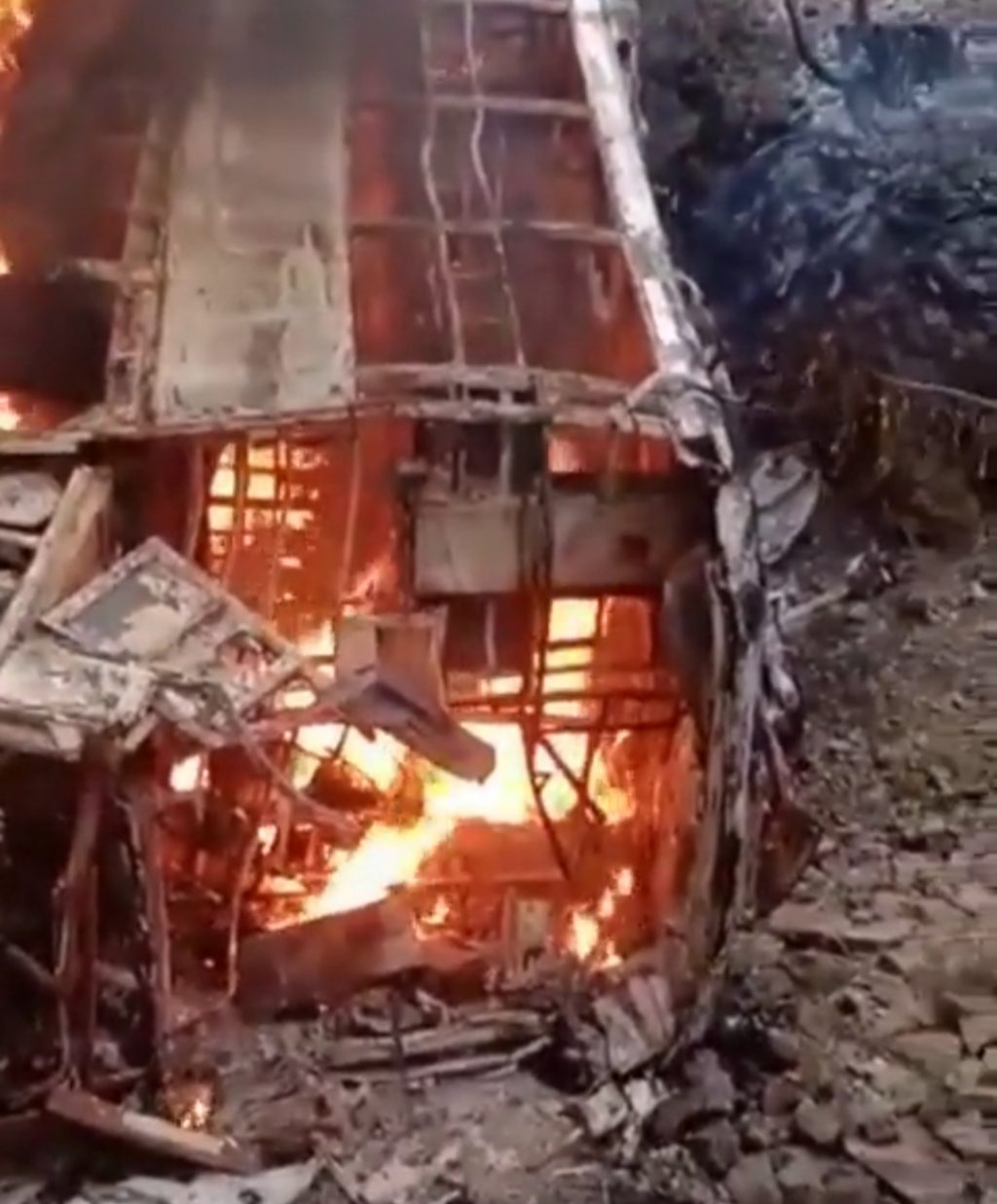 Kalaburagi: A private bus that was gutted in fire after an accident in the outskirts of Kamalapura town in the...