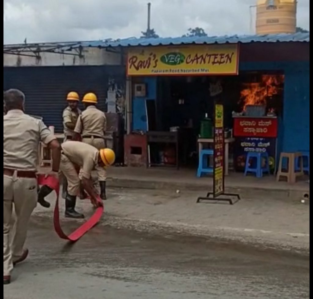 Mysuru: Following the leakage of gas from a LPG cylinder, fire erupted at a canteen in private bus stand complex...