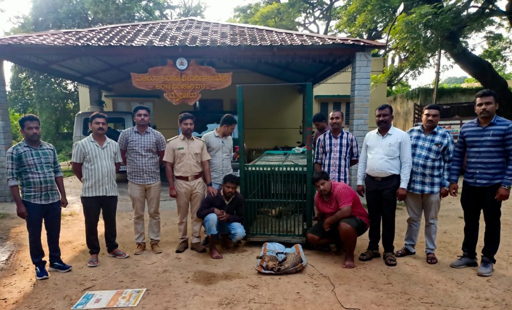 Mysuru: Forest Mobile Squad personnel of Mysuru arrested two persons and seized two wild cats and a civet cat, while...