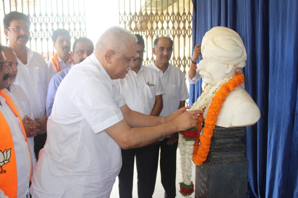Mangaluru: B L Santosh BJP national general secretary (Organisation) on Saturday offered floral tributes to the bust of Ammembala Subbarao...