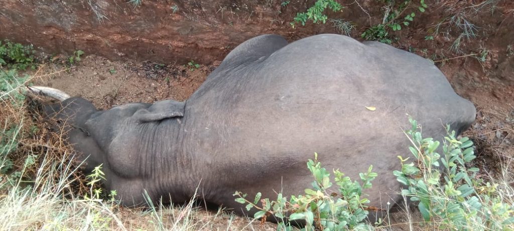 Mysuru: A 40-year-old male elephant, suffering from blindness, tragically fell into a trench in the Omkar Range forest of the...