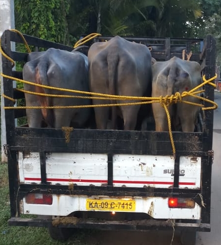 Mysuru: Acting on a tip off, the night beat police at Hunsur have rescued seven buffalos being transported to a...