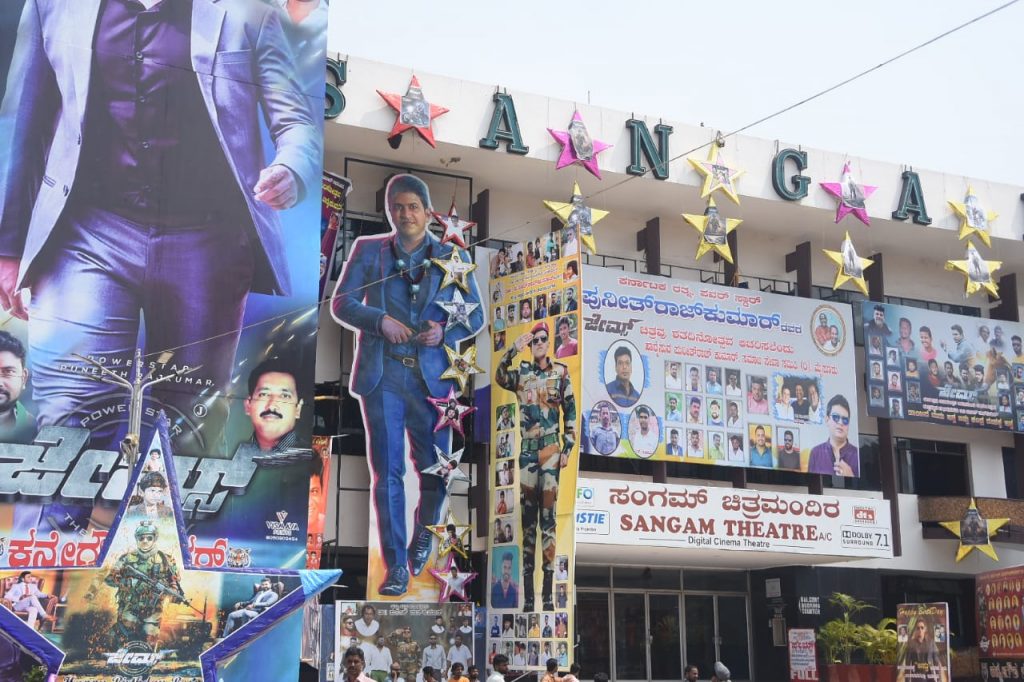 Mysuru: Actor Shivarajkumar visited Gayatri theatre in the city on Thursday. James the latest release of Puneeth Rajkumar is being...