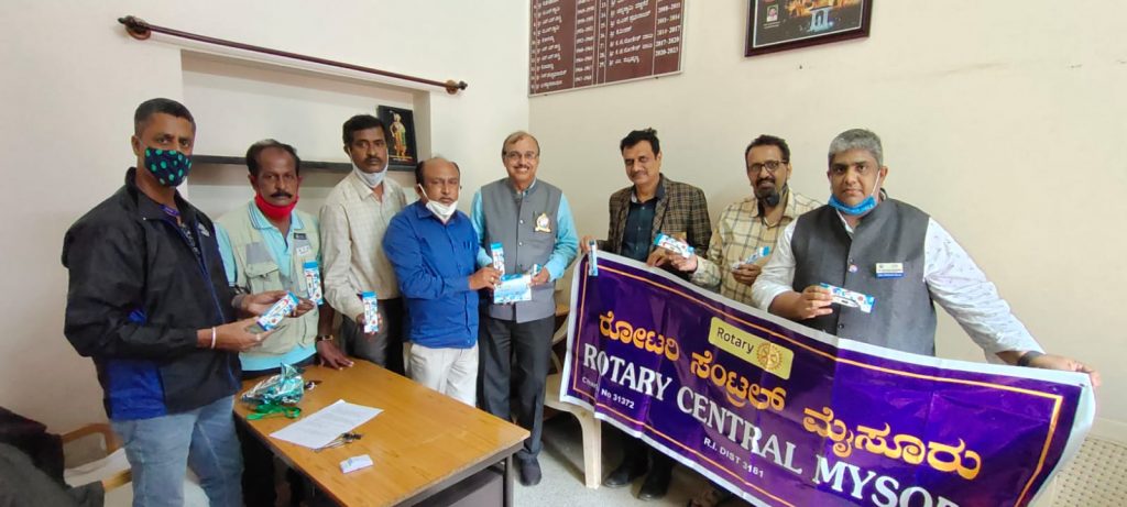 Mysuru: Rotary Central Mysore on Thursday handed 250 digital thermometers for the benefit of journalists at Mysore District Journalists Association...