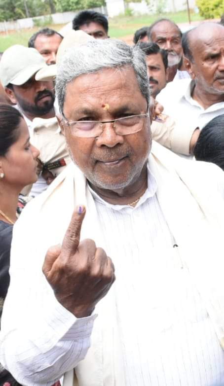 Mysuru: Former chief minister Siddaramaiah who is also contesting as Congress candidate in Varuna exercised his franchise at his native...