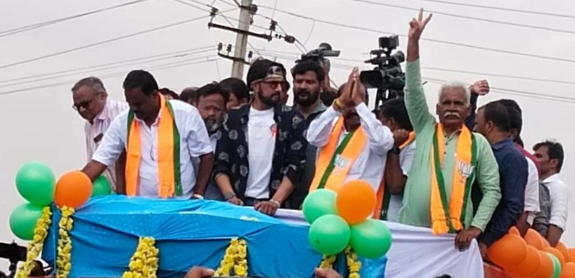 Chitradurga: Sandalwood actor Kichcha Sudeep held a road show at Molaklamur constituency in Chitradurga district campaigning for BJP candidate Thippeswamy,...