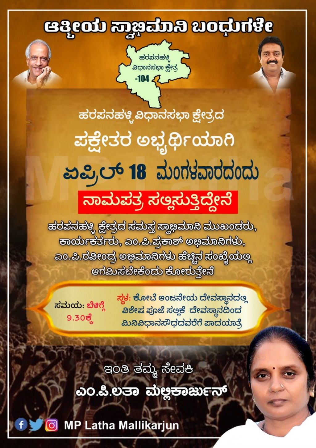Vijayanagar: Upset over being denied of a ticket by the Congress party, former deputy chief minister Late M P Prakash's...