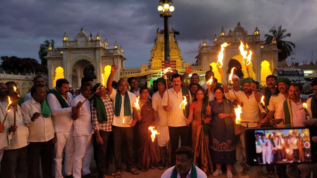 Mysuru: Following the release of Cauvery water from Krishnaraja Sagar (KRS) dam in Mandya to Tamil Nadu, farmers took out...