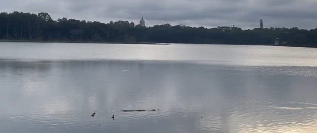 Mysuru: A giant size crocodile was spotted at Kukkarahalli lake in the city on Sunday, much to the delight of...