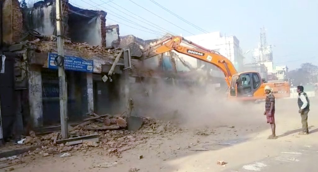 Mysuru: In view of public safety, Mysuru City Corporation (MCC) officials pulled down a dilapidated building opposite New Hotel Harihara...