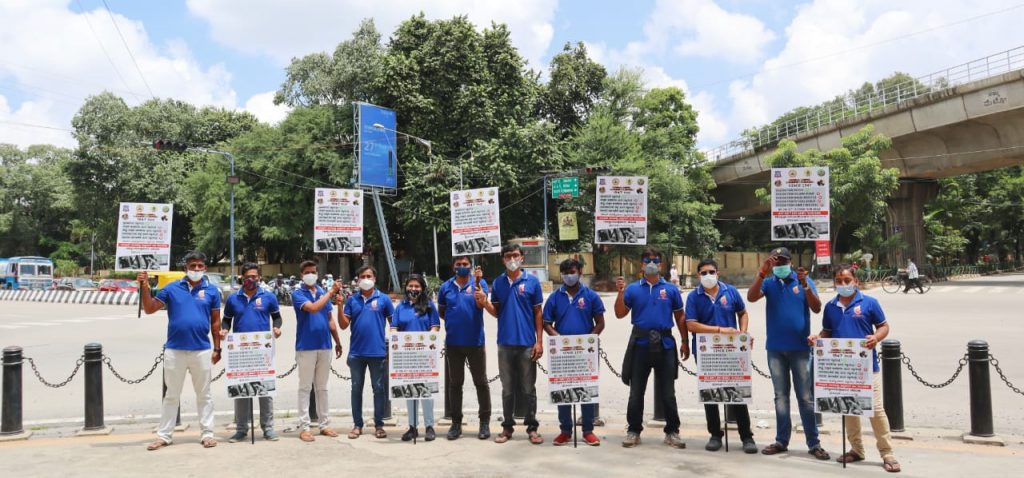Bengaluru: Volunteers of Beggars Free Bharath Movement created awareness at Anil Kumble Circle, M G Road in the city on...
