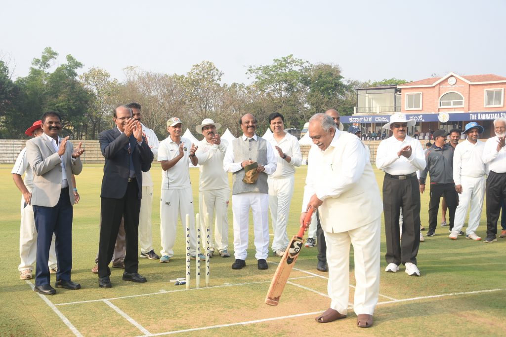 Mysuru: Two-day V Prabhakar Memorial Legends Cricket Tournament began at SDNRW Stadium (Gangotri Glades) in the city on Saturday. (Left...