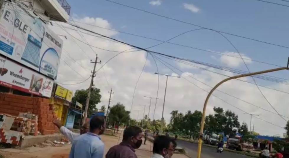 Mysuru: Tension prevails at Bogadi outer- ring road junction as power cables have snapped following a mishap. The cables are...