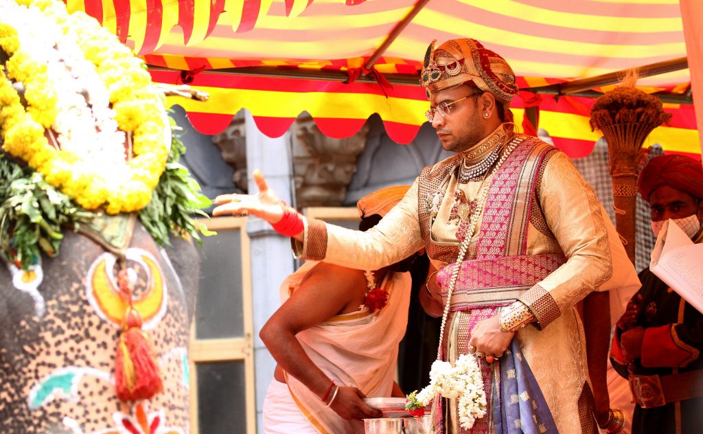 Mysuru: Scion of erstwhile royal family of Mysuru Yaduveer Krishnadatta Chamaraja Wadiyar offered puja as part of Ayudha puja at...